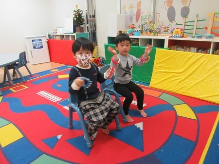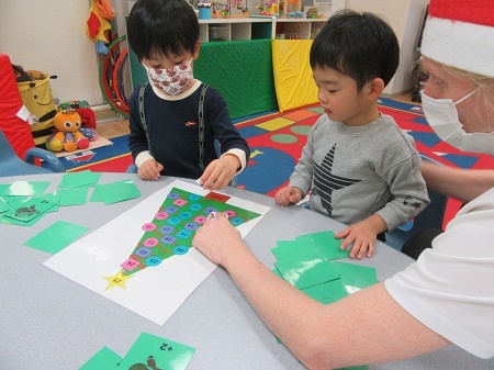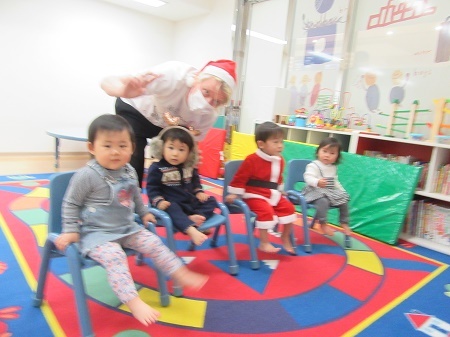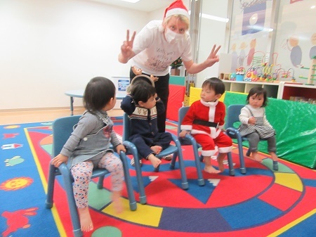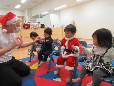 今年最後のレッスンは、お友達が楽しみにしているChristmas Event です!!マイケル先生からいろんなクリスマスキャラクターを教えてもらいました。たくさんのChristmas Songをうたい、曲に合わせて鈴を鳴らしました☆幼稚園クラスではたくさんのChristmas Songをうたい、そしてChristmas Gameをしました!フープを10個並べて、1から10の点数をつけsnowbowlを投げ入れるゲームでは、誰が一番点数が高いか競争しました。クリスマス絵合わせやすごろくゲームもとても盛り上がりました。とても楽しいChristmas Funでした☆