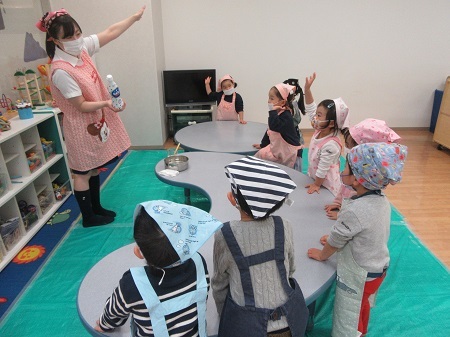 ウィンタースクール最終日はクッキングです!テーマは「プルプル真っ白雪ん子ゼリーをつくろう!」です。カルピスを使ってゼリーを作りました。いろんな材料を混ぜて、お皿に流し込み、完成後は飾り付けを楽しみました。真っ白雪ん子ゼリーのお名前通り、とっても可愛いデザートが出来ました!