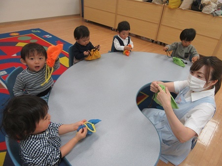 2021年、年明け初めてのレッスンでした。袋遊びは巾着袋の開閉の練習をしました。製作ではゆきだるまを作りました。ゆきだるまのお顔も作り、表情豊かな作品が出来ました!ボーリング遊びを行いました。ピンに見立てたブロックが倒れるところが面白く、笑顔が絶えないレッスンとなりました。次週は祝日の為、お休みです。次回は18日となります。