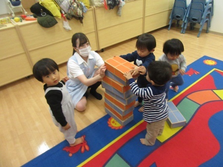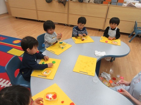 排泄についてのレッスンではマナーについて、教材を通して学びました。みなさん、大好きな粘土遊びではケーキ作りをしました。粘土あそびの活動にとても集中して取り組みことが出来ています!何を作ると考えながら行いました。フープ遊びやボーリング遊びをしてたくさん、身体を動かしました☆