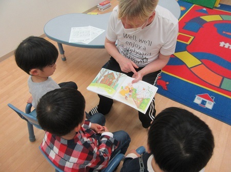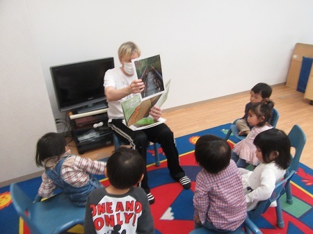 3月に入りました!ベイビーズクラスは6名全員そろってのレッスンで、一段と活気にあふれていました!今月のStorybook "what's this?"をCDに合わせて、マイケル先生がゆっくり読み聞かせをしてくれました☆