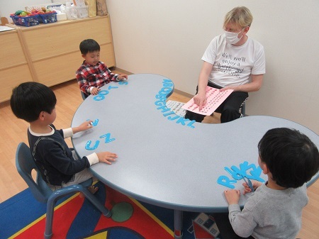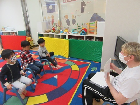 幼稚園クラスは3名全員そろってのレッスンです!マイケル先生から"What's your name?" "How old are you?"などの質問でレッスンスタートです。その後、お友達同士で"How are you?"などの会話に進みました。会話も弾んで楽しそうでした☆