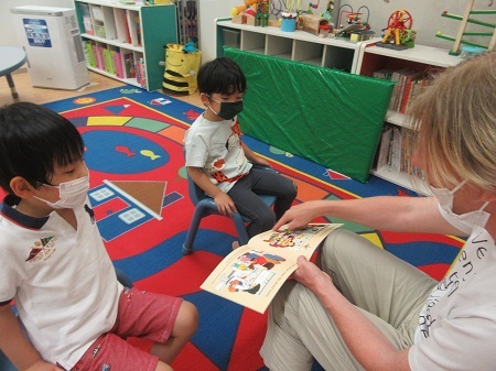 梅雨の季節に合わせて、雨についてのレッスンでした。「雨の日は何を着るのかな?」と考えながら "Rain! Rain! Rain!" を読みました。大好きなソーセージの歌に合わせて今日も元気いっぱい身体を動かしました☆