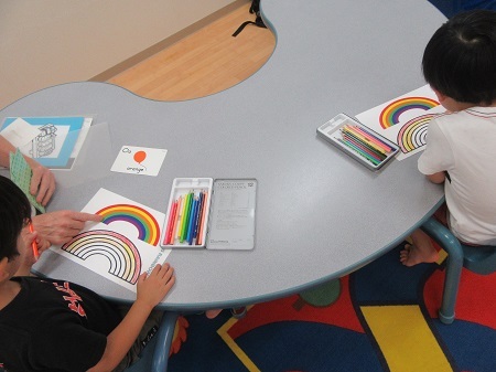 町や自然の中に出てくる "Color" をお友だちと探しました。それぞれが指をさしながら、色を探すことに一生懸命な姿が見られました☆