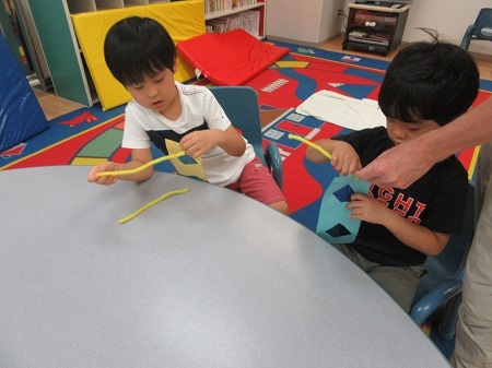 Craftでは、お友だちそれぞれが好きな形や色を選び "Sunglasses" を作りました。つけてみると、とてもお似合いでした☆来週はもっと素敵な "Sunglasses" に仕上げていきます。次回が楽しみです☆