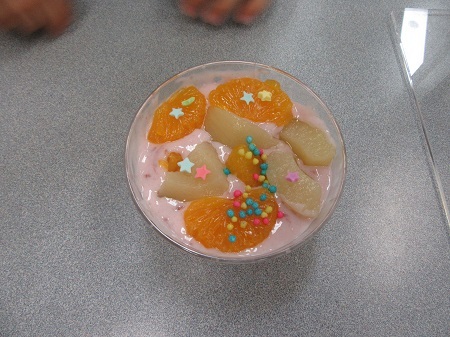 暑い夏にぴったり!プルプルパフェを作りました。混ぜたりトッピングをしたり、みんなとっても楽しんでいました。「美味しいね!」と笑顔いっぱいで出来上がったパフェを召し上がっていました☆
