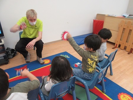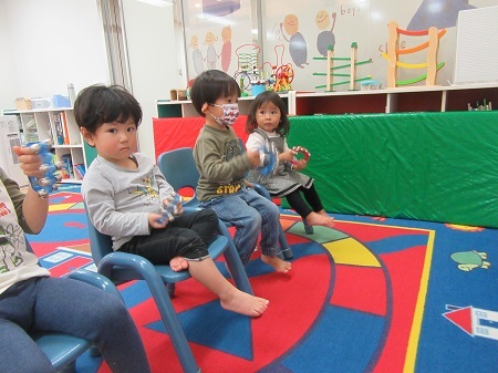 12月に入り、レッスンはクリスマスにちなんだ内容になりました!楽しいクリスマスソングに合わせて、鈴を鳴らして演奏です♪ "シャンシャンシャン"とお部屋の中はきれいな音で包まれていました☆