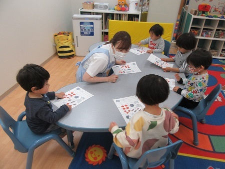 ワーク、かるたでひらがなのお勉強を頑張りました!!頑張ったあとは、みんなで楽しめるゲームをたくさんしました♪ ルールが難しい椅子取りゲームもお約束を守り、仲良く遊びました☆