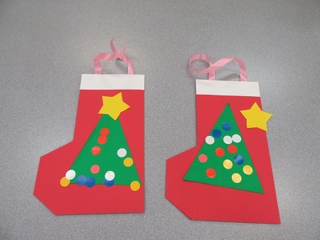 クリスマスレッスンでは、制作クリスマスブーツを作ったり、サンタさん・トナカイさんのお顔作りのゲームをしました☆