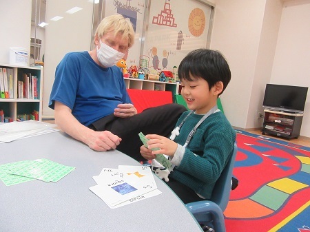 今回の絵本は "Sun and wind" でした。講師の発音をよく聞きながら、お友だちと一緒に見て聞いて学びました。1~15までまたそれ以上の数字を英語で言えるよう、練習を頑張っています!