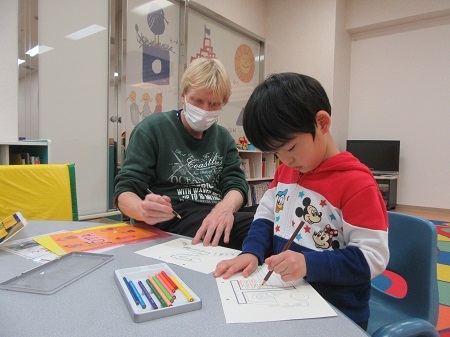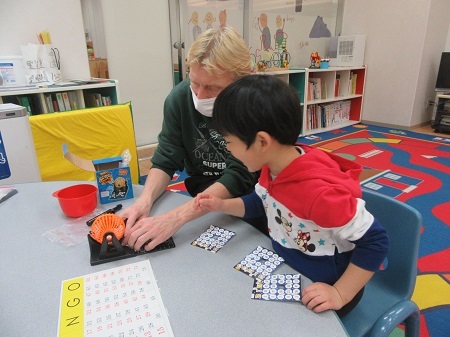 初めてビンゴゲームをしました。1~70までの数を英語で学びながらゲームのルールを学び、楽しみました。ワークの活動では書き取りを行いました。