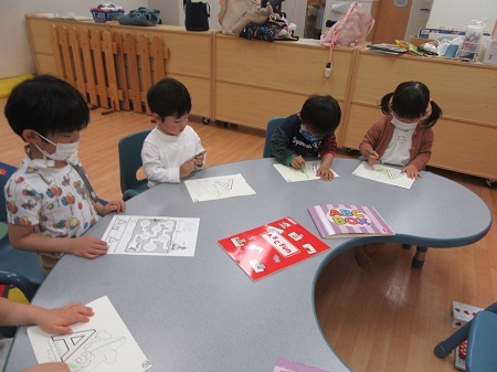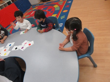 ベイビーズクラスからASCクラスに進級し、初めてのレッスンでした!大きいクラスでは、ワークでの書き取りの活動が始まります。アルファベットを書いたり、カードで「ばくだんゲーム」をして数を学びながらゲームを楽しみました。