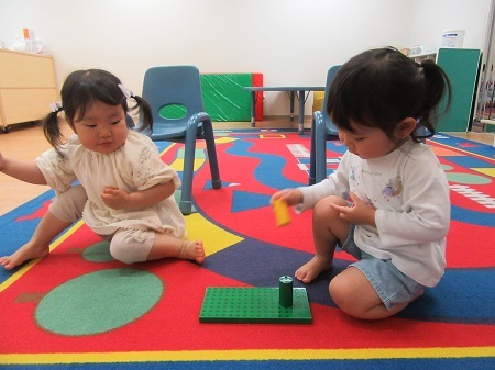 ひらがなカードを使って、かるたゲームをしました!ルールも理解し、積極的にとることができました。ブロックを使って高さ比べをしました。「高い」「低い」の違いを学ぶことができました。