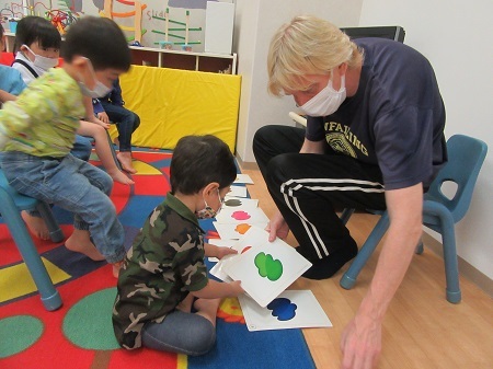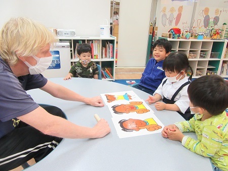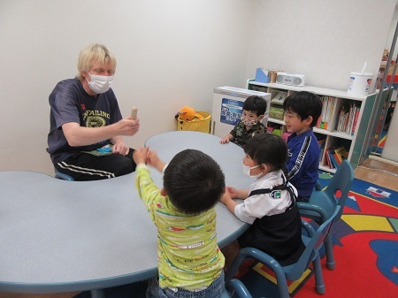 'How are you today?'の質問に、上手に答えられるようになってきました。前回から引き続きのクラフトでは、素敵な風車が完成し、みんな大喜びでした。