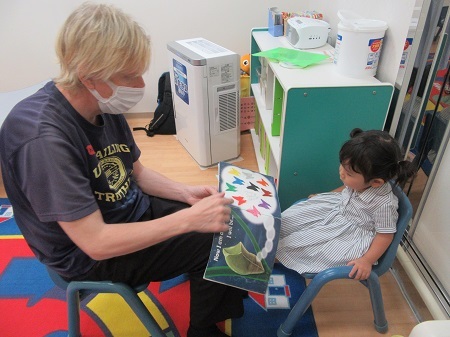 数字のお勉強からスタートです!!先生の発音をよく聞いて、上手に真似して発音していました。絵本ではカラフルな絵柄から色の名前を覚えました。