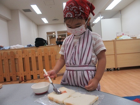 2022年サマースクールが開講いたしました!初日は「ロールサンド」です。ジャムやクリーム、トッピングなどをパンに塗って"くるっ"と巻きました。見た目もとってもかわいく、美味しく、大成功でした‼ 新聞紙を使ったゲームを行い、笑顔あふれるレッスンでした☆彡