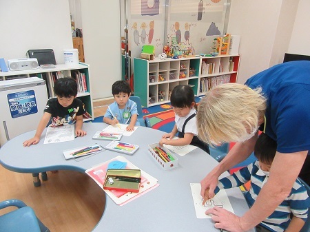 数のレッスンでは、1から31までの数字を学びました。1月から12月までの1年間もしっかり身に付き、とても上手に言えるようになりました。クラフトでは、" Father'sDay " に向け、プレゼントのカード作りをしました。