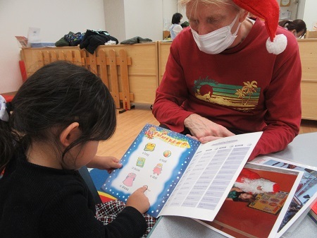 すごろくゲームや、クラフトを作りながら、言葉を覚えていきます。ご本にも興味があります。知っている言葉が出てくると、嬉しいですね。